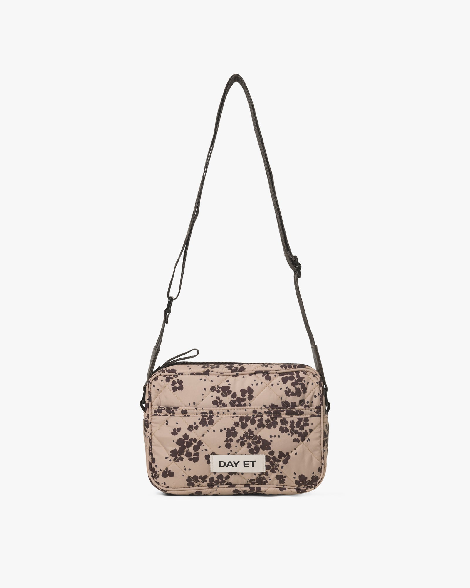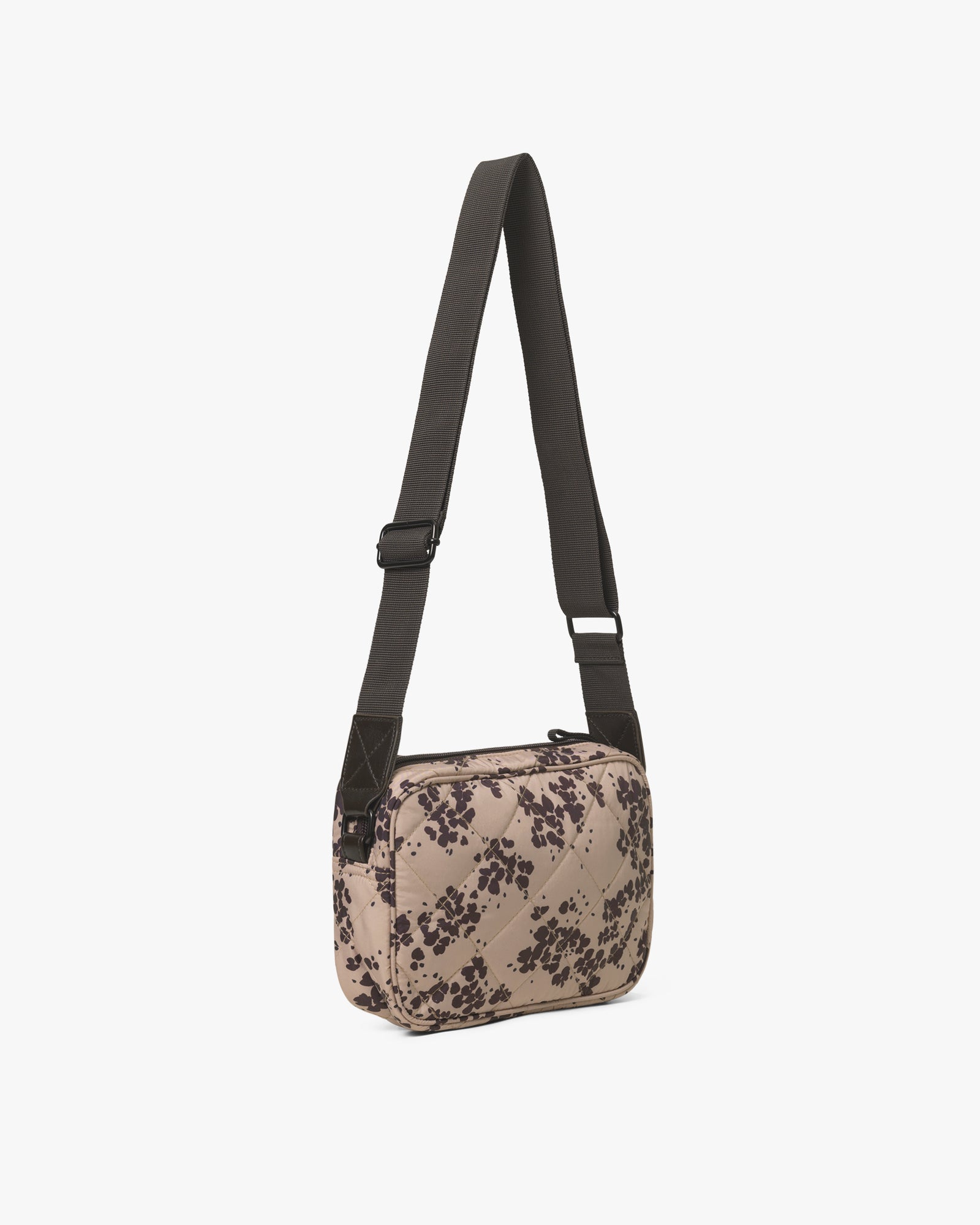 En crossbody med justerbar rem och två innerfickor som gör det enkelt att hålla ordning på dina saker. Väskan är quiltad och har ett blommigt tryck som ger den en feminin och stilren look. Den stängs med dragkedja och både yttertyget och innerfodret är tillverkat av 100% certifierat återvunnet material.