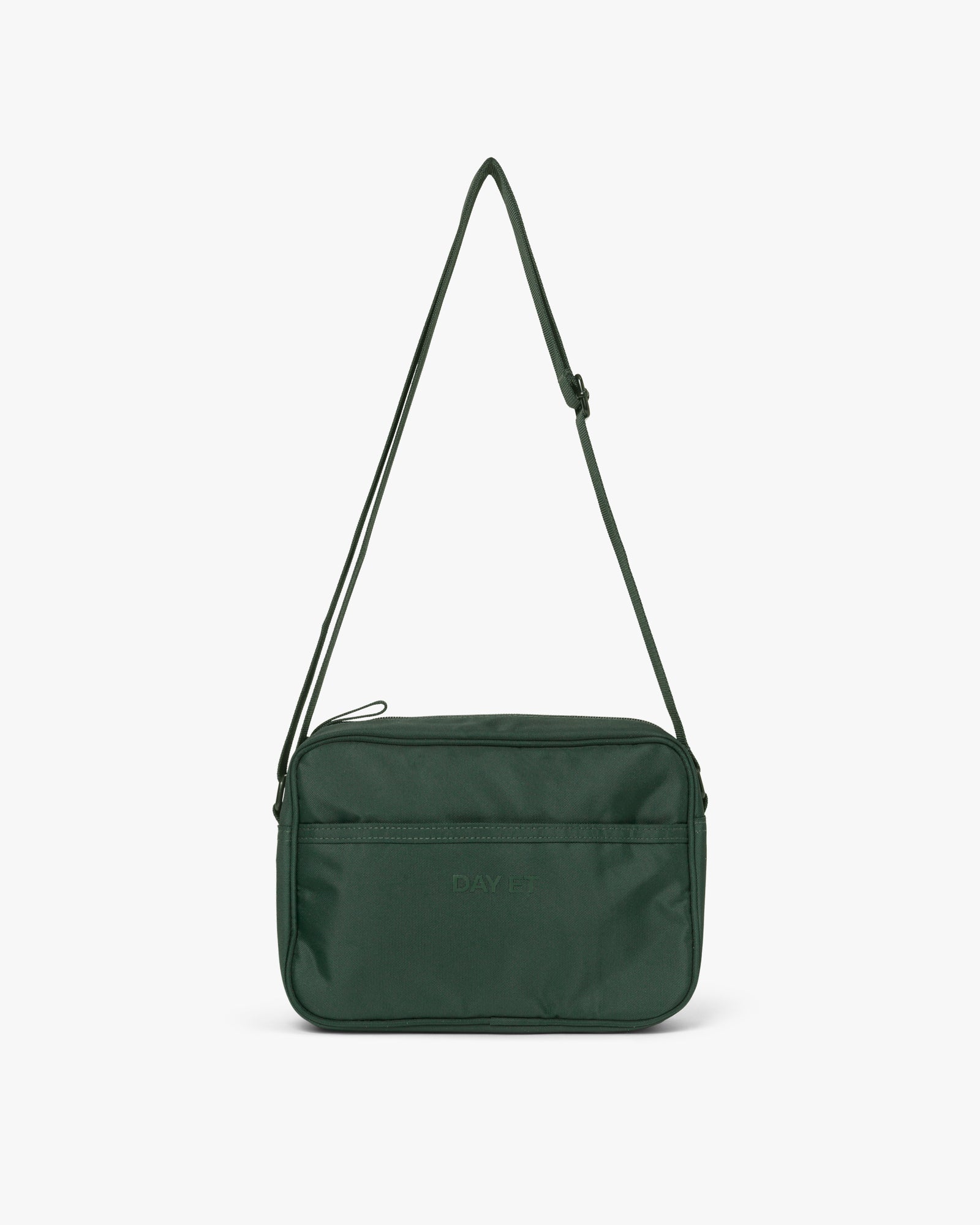 Väskans yttertyg och innerfoder är tillverkade av 100% certifierat återvunnet material. Väskan stängs med dragkedja och har flera fickor så att du kan organisera dina tillhörigheter. Remmen är justerbar så att du kan anpassa den så att den passar just dig.