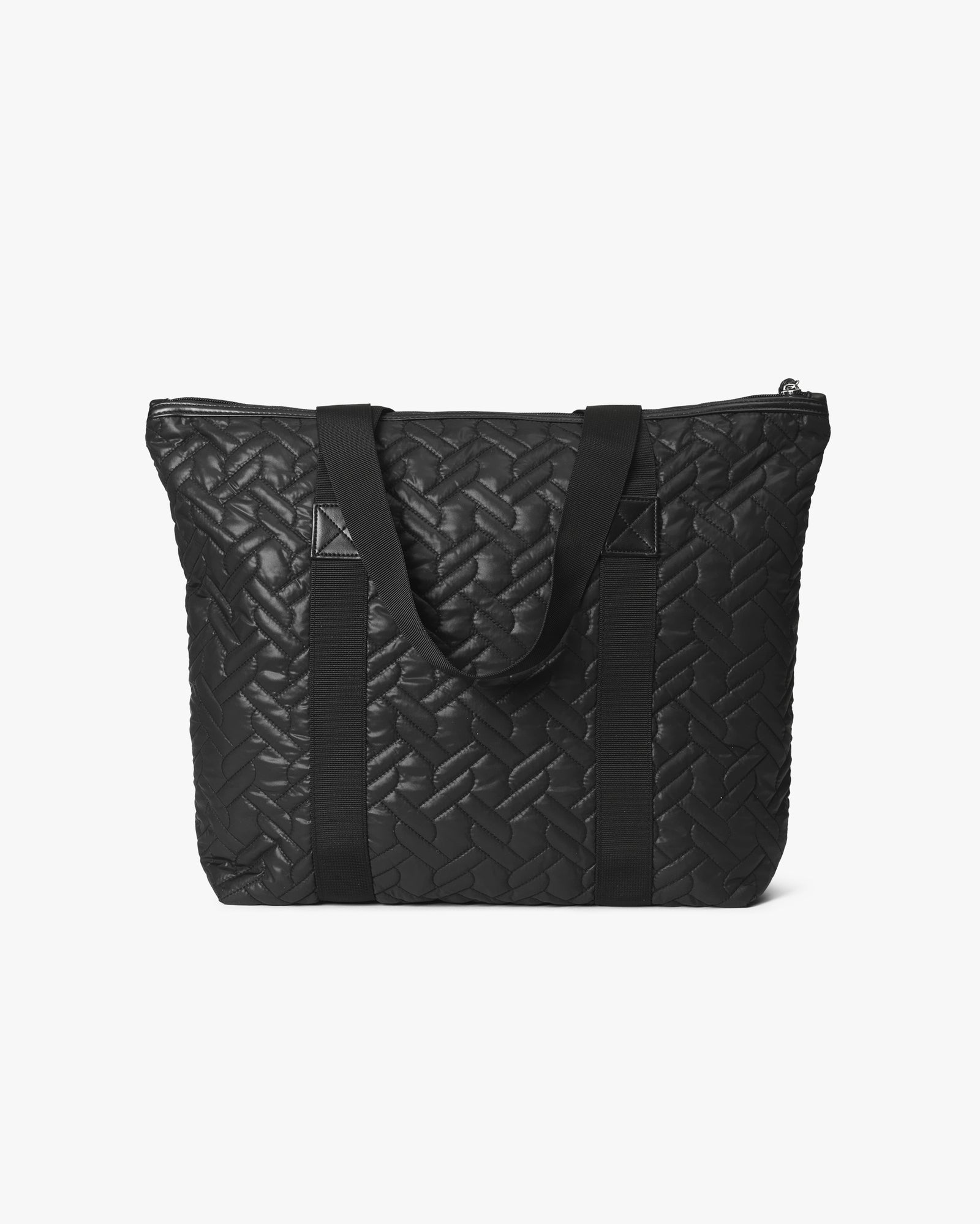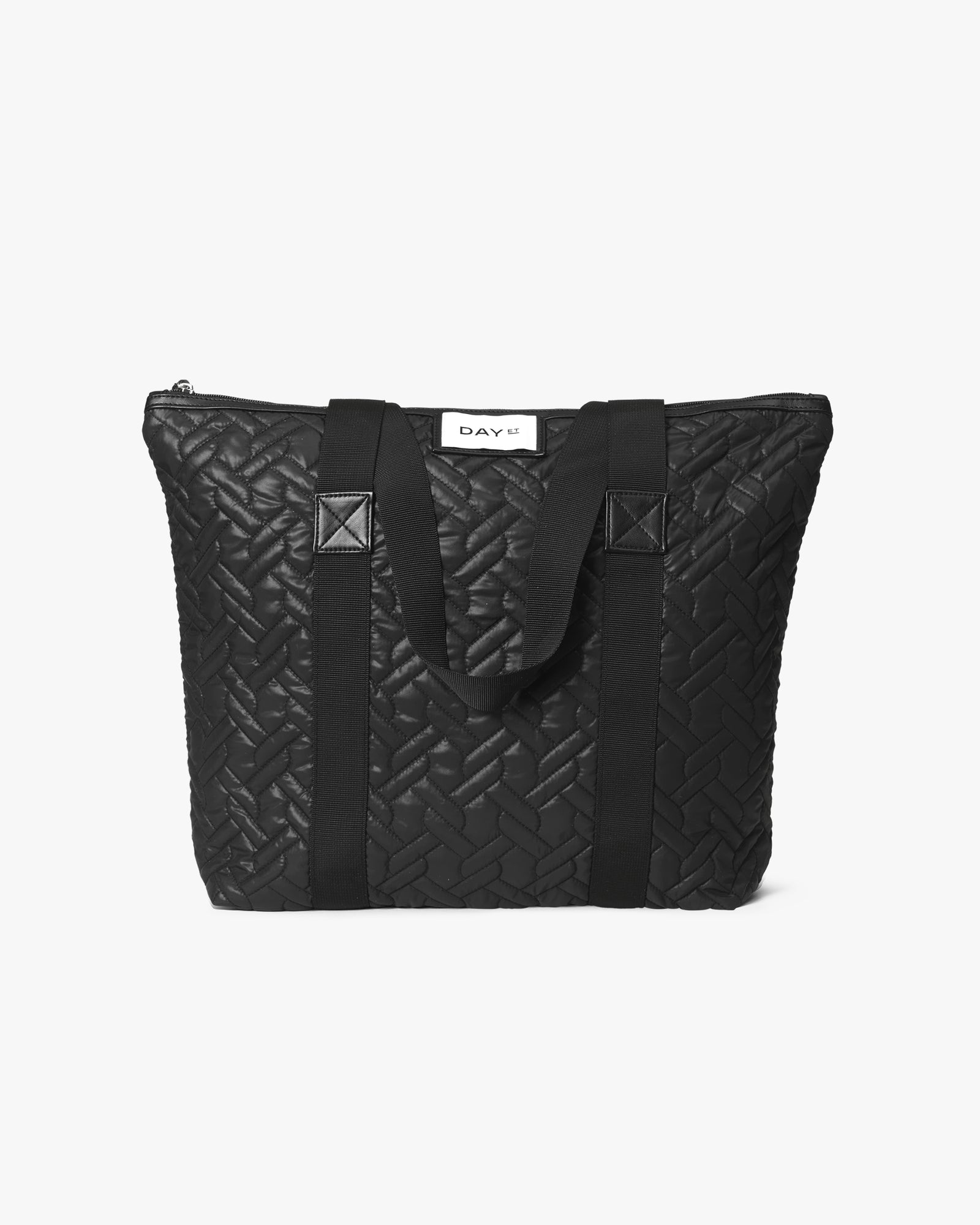 Väskan är designad som en quilt och dess yttertyg och innerfoder är tillverkade av 100 % certifierat återvunnet material. Den stängs med dragkedja och i huvudfacket finns plats för allt du behöver under dagen, inklusive din dator. Väskan har också en invändig ficka med dragkedja där du kan förvara din telefon eller plånbok, och den har långa remmar som gör den bekväm att bära över axeln.
