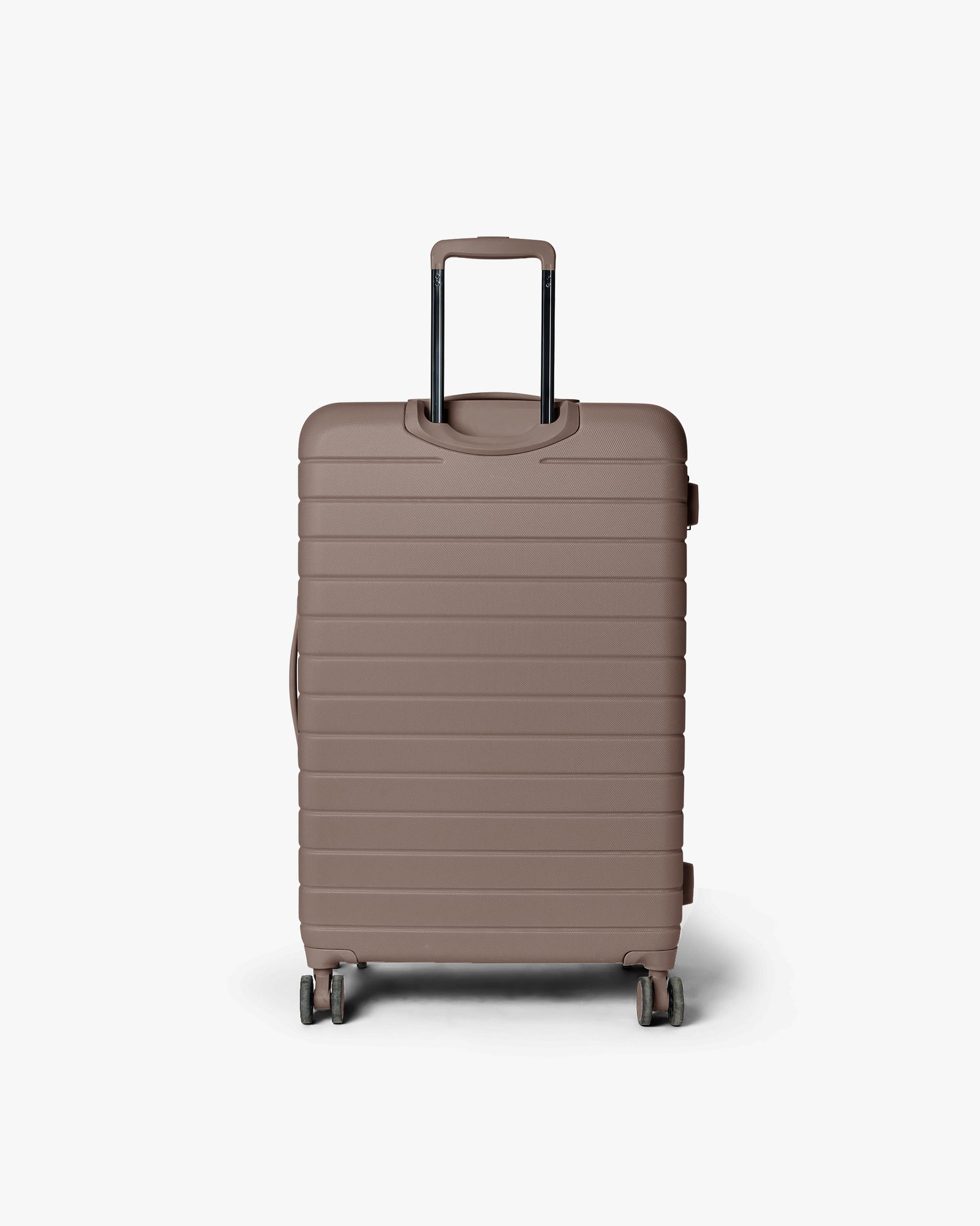 Den perfekta resväskan för längre resor. Den har ett fack med dragkedja och packremmar, så att du kan hålla reda på alla dina tillhörigheter i en klassisk design. Den rymmer upp till 95 liter och har fyra dubbla hjul som kan rotera 360 grader, så att du kan skjuta den utan problem. Resväskan är tillverkad av ett lätt och slitstarkt hårdskalsmaterial och har ett TSA-godkänt lås för att hålla dina tillhörigheter säkra. Den har en ton-i-ton-design med det klassiska Day Et-logotypen på framsidan.
