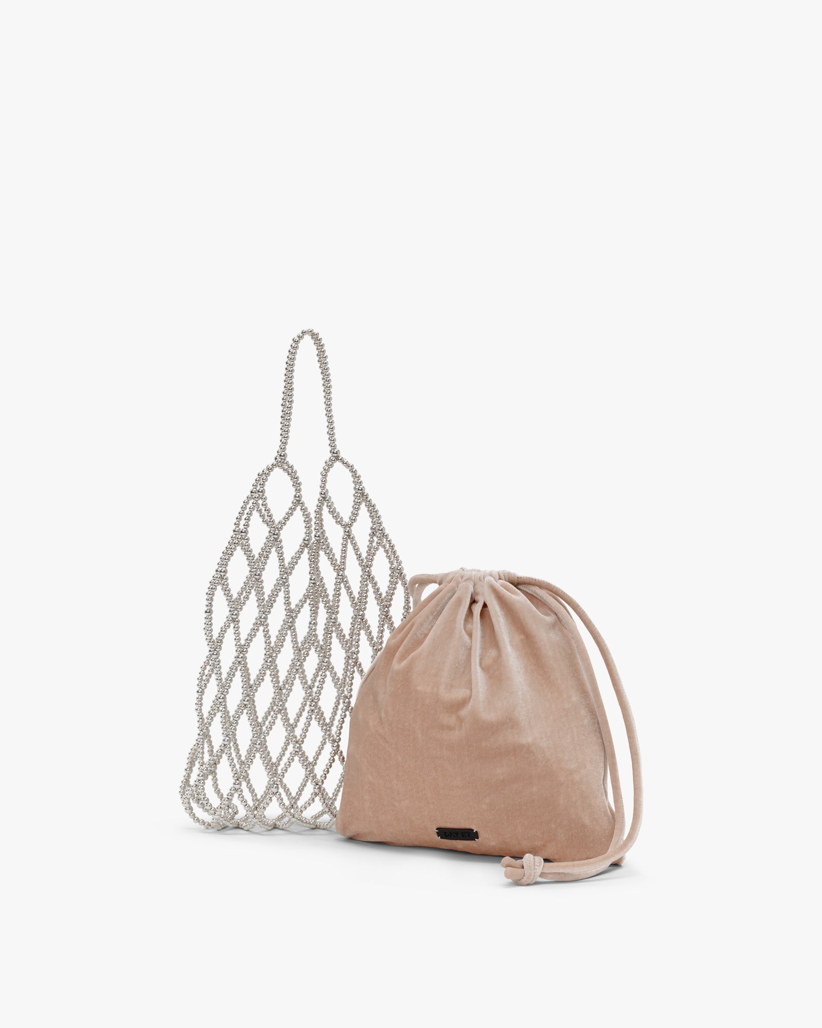 En lett og dekorativ skulderveske som skiller seg ut med sitt nettdesign laget av perler med metallfinish. Den indre posen i myk velur lukkes med snøring og har plass til det viktigste. Vesken kan bæres både i hånden og over skulderen – perfekt til festlige anledninger eller som et blikkfang i hverdagen.