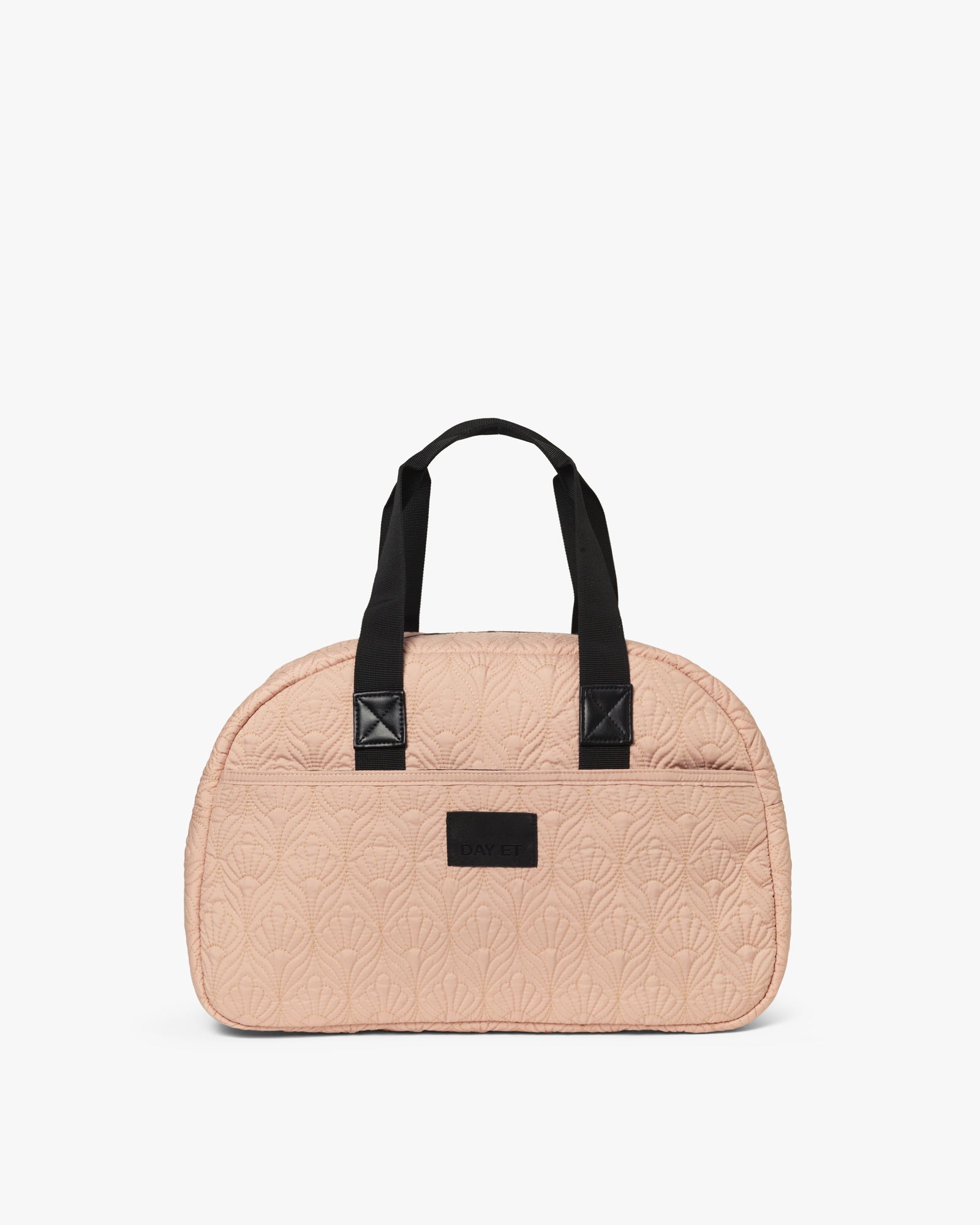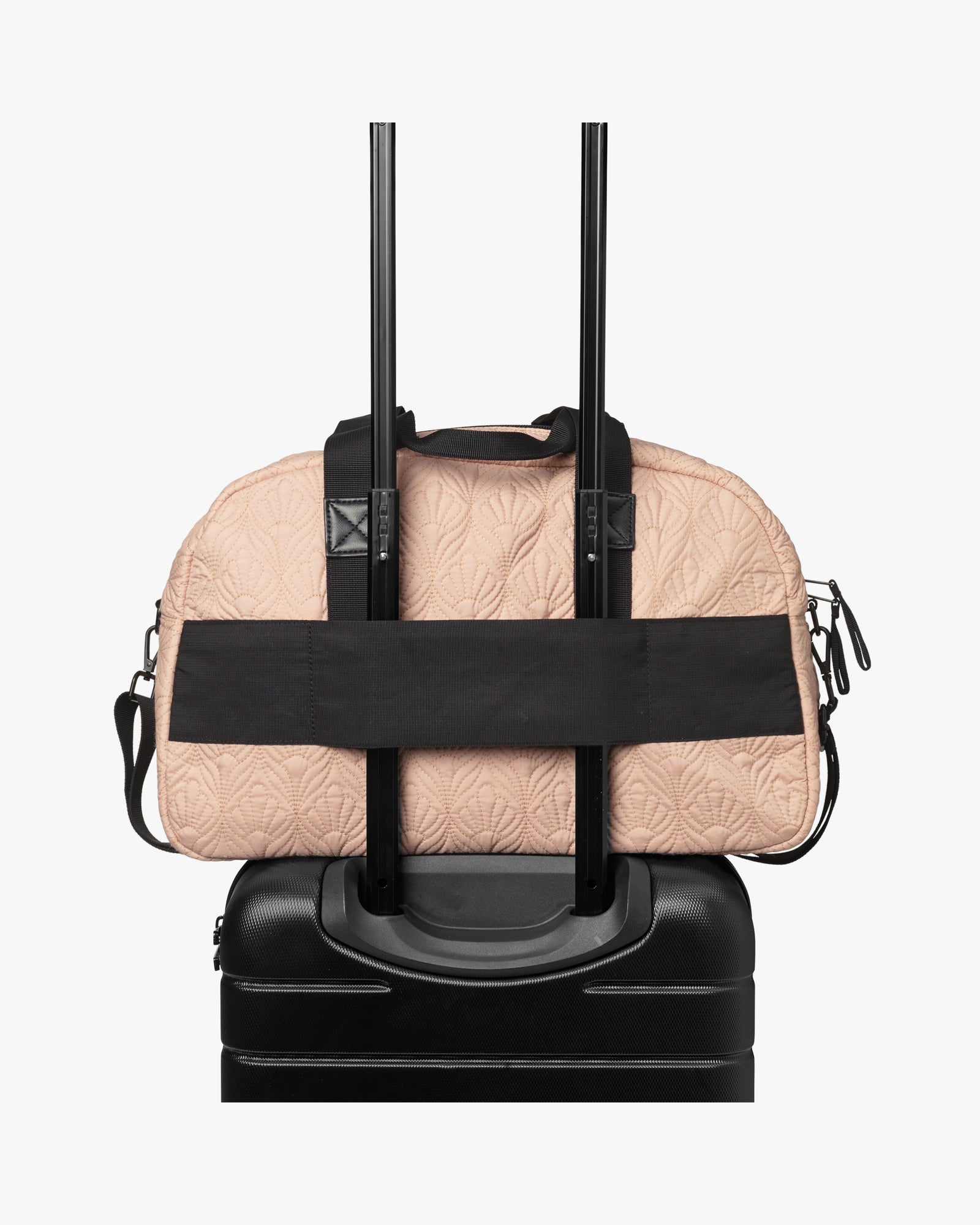 Denna funktionella väska i ett vackert quiltat mönster är perfekt för en resa. Huvudfacket har plats för en 13" laptop och väskan har flera fickor för att organisera dina tillhörigheter. Väskan har två kortare handtag och en avtagbar, justerbar rem så att du kan bära den över axeln eller som crossbody. Den har också en rem på baksidan så att den kan användas som resväska och enkelt fästas på en resväska. Väskans yttertyg och innerfoder är tillverkade av 100% certifierat återvunnet material.