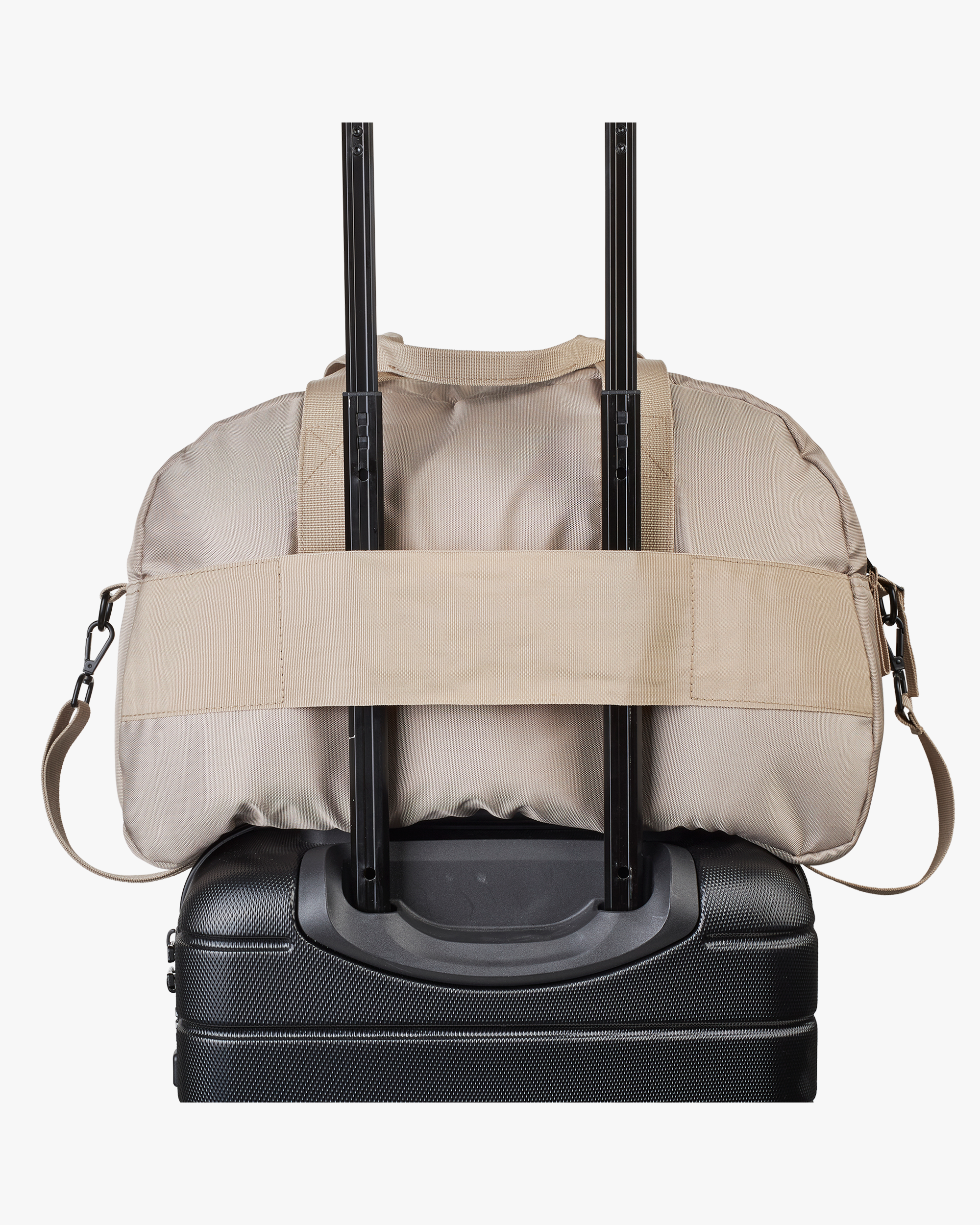 Den här funktionella väskan är perfekt för en resa. Yttertyget och innerfodret är tillverkade av 100% certifierat återvunnet material. Huvudfacket har plats för en 13” laptop och väskan har flera fickor för att organisera dina tillhörigheter. Väskan har två kortare handtag och en avtagbar och justerbar rem så att du kan bära den över axeln eller som crossbody. Den har också en rem på baksidan så att du kan fästa väskan på en resväska.