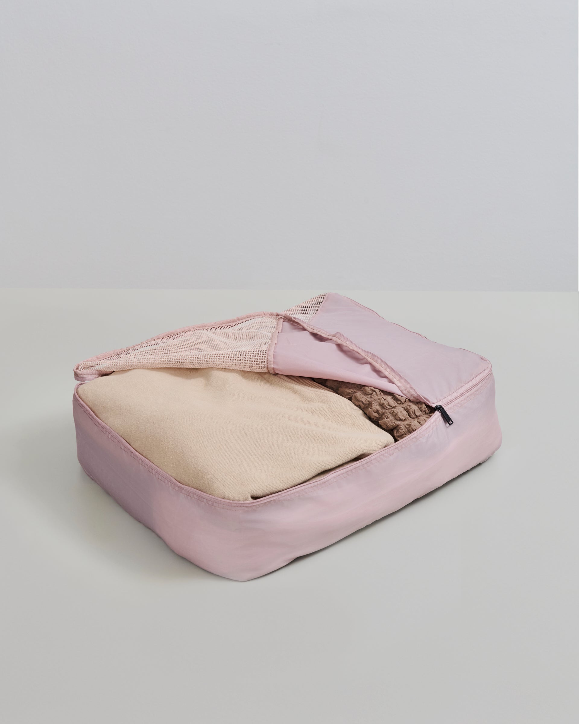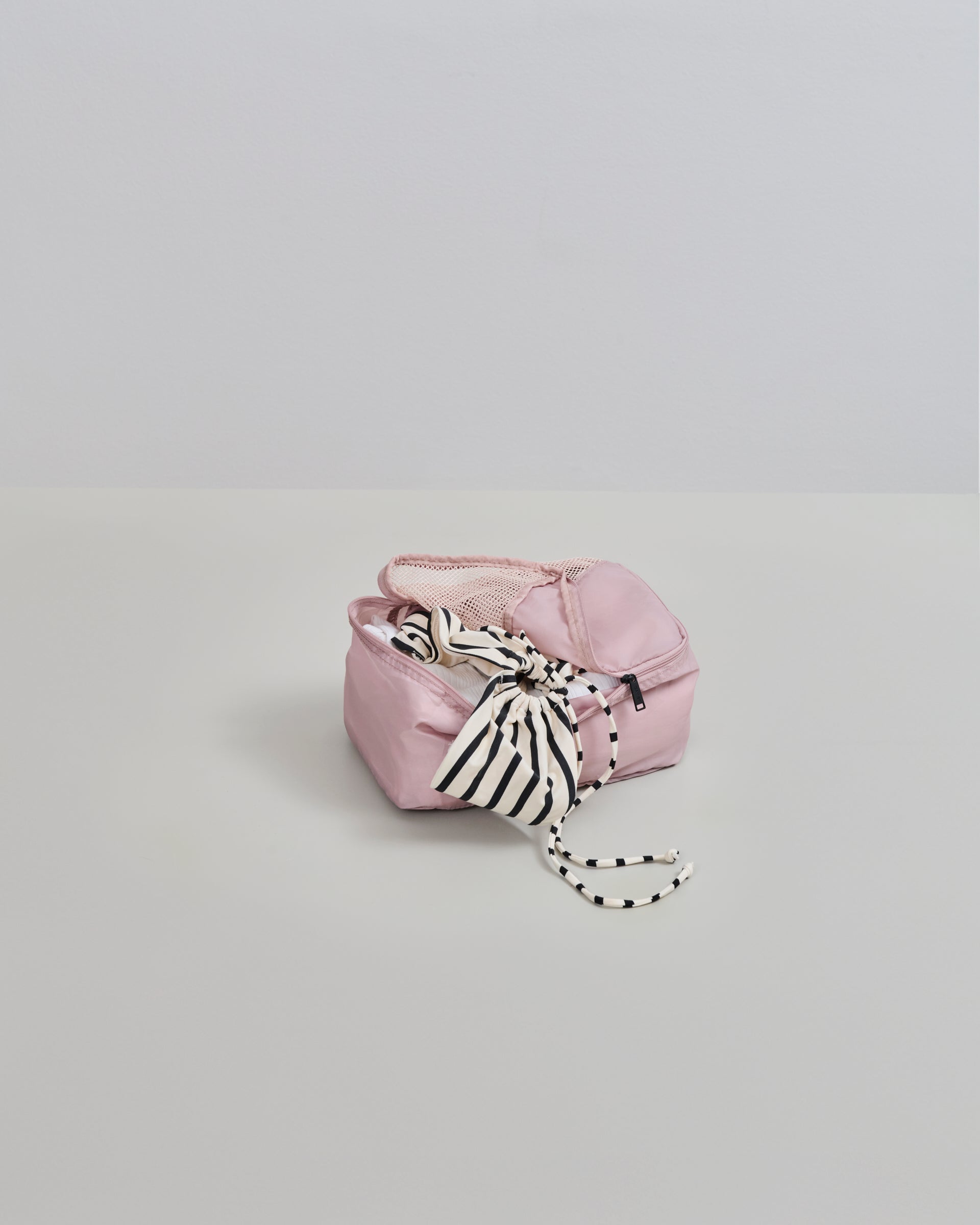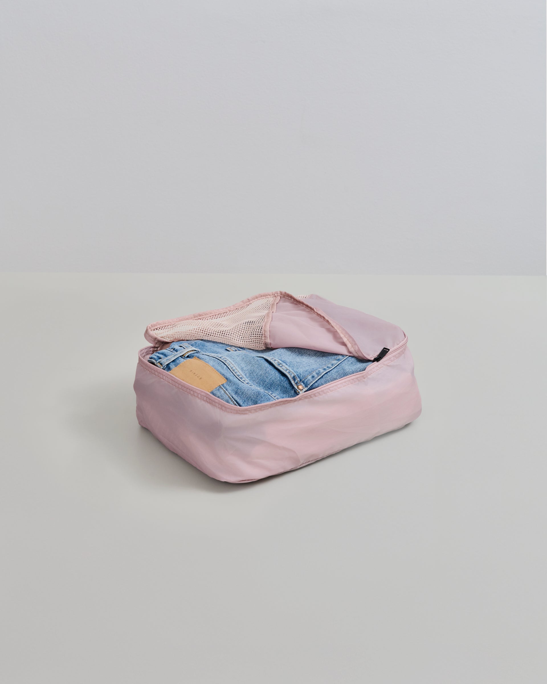 Dette sæt af packing cubes indeholder packing cubes i størrelserne S, M og L. De kan bruges til at organisere dine sager, når du pakker din kuffert, og hovedstoffet er lavet af genanvendt materiale. De lukkes med en lynlås, og øverst på packing cubes er der et net materiale, så du nemt kan se hvad du har pakket.