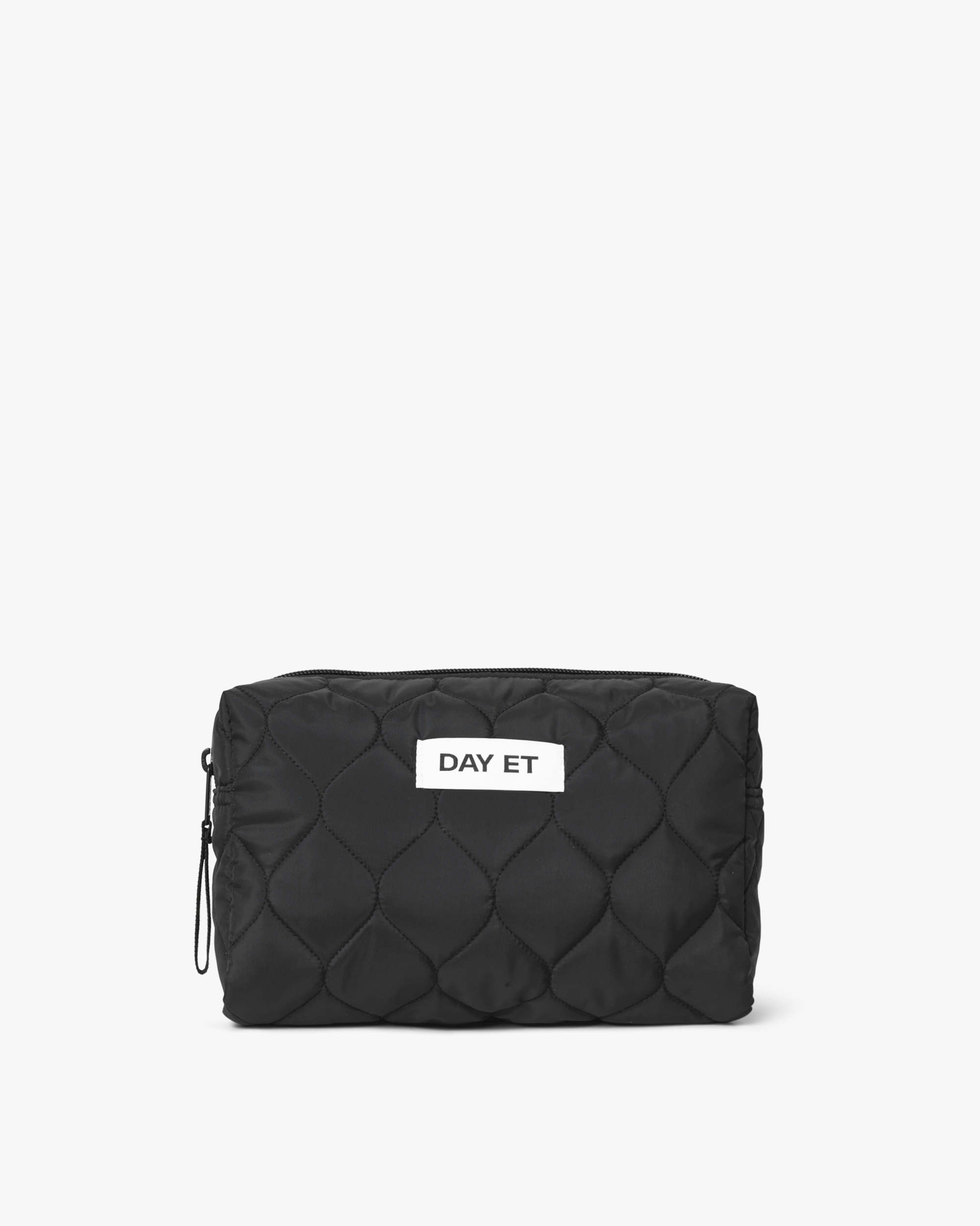 En quiltet toilettaske i en praktisk størrelse, som gør det let at opbevare dine vigtigste produkter. Den lukkes med lynlås og har en åben lomme indvendigt.