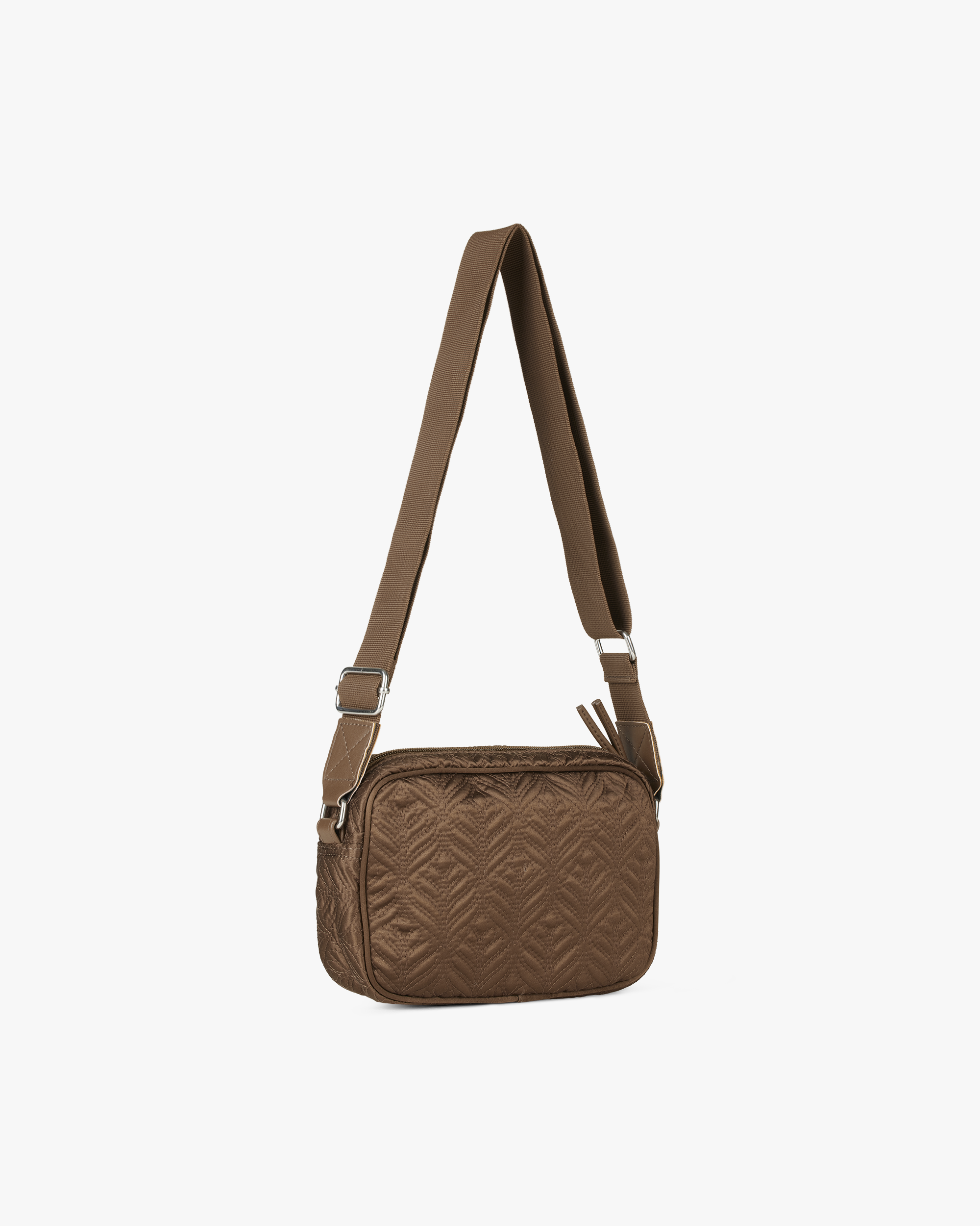 Denne crossbody er perfekt til en dag på farten. Den er designet i en flot quilt, og den lukkes med en lynlås. Tasken har to indvendige lommer samt en udvendig lomme, så du kan holde orden i din taske. Taskens strop er justerbar, så den kan tilpasses, så du kan få den ønskede pasform.