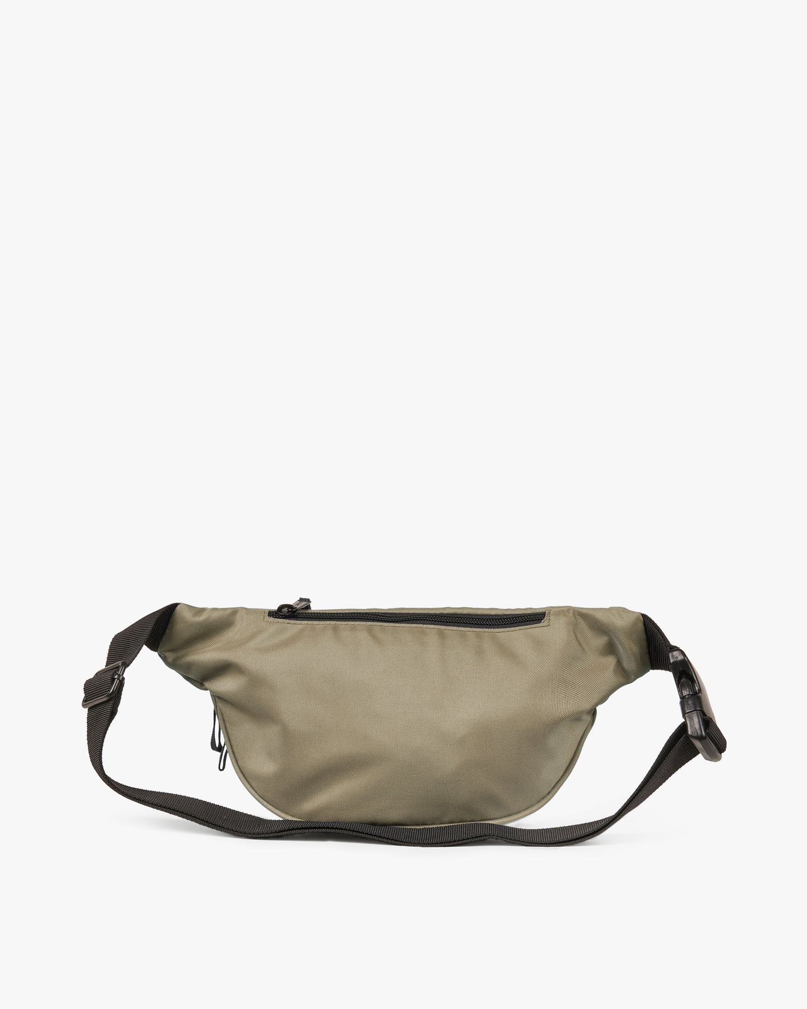 Denne funktionelle bæltetaske har et klassisk design, og dens ydre stof og inderfor er lavet af 100% certificeret genanvendt materiale. Tasken lukkes med en lynlås, og den kan indeholde 1,5 liter. I hovedrummet er der en indvendig lomme, og bagpå tasken er der en lynlås lomme, så du kan holde orden i din taske. Taskens strop er justerbar og har et spænde, så den kan tilpasses, så den passer til dig. Den kan både bæres som crossbody og rundt om maven.