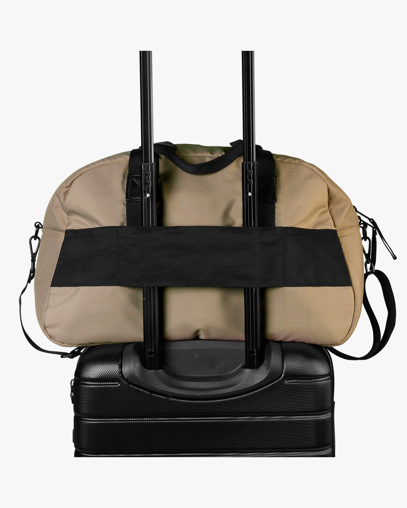 Den här funktionella väskan är perfekt för en resa. Yttertyget och innerfodret är tillverkade av 100% certifierat återvunnet material. Huvudfacket har plats för en 13” laptop och väskan har flera fickor för att organisera dina tillhörigheter. Väskan har två kortare handtag och en avtagbar och justerbar rem så att du kan bära den över axeln eller som crossbody. Den har också en rem på baksidan så att du kan fästa väskan på en resväska.